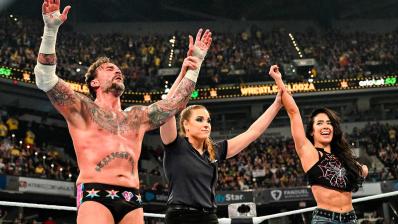 Más adelante llegó un combate mixto que tenía todos los reflectores CM Punk y AJ Lee hicieron equipo para enfrentar a Seth Rollins y Becky Lynch. La nostalgia, la química en pareja y la intensidad sobre el ring hicieron de este duelo un verdadero espectáculo. Finalmente, Punk y AJ lograron la victoria, dándole a los fanáticos una de esas postales que parecían imposibles de ver, pero que Wrestlepalooza convirtió en realidad.